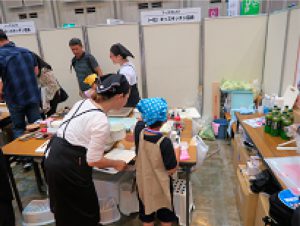 食育推進施策の基本的枠組み 119 2025/04/23 コラム:「第14回食育推進全国大会inやまなし」を通じた食育の普及啓発 「第14回食育推進全国大会inやまなし」は、令和元(2019)年6月29日、30日の2日間にわたり、山梨県甲府市(こうふし)の山梨県立産業展示交流館アイメッセ山梨をメイン会場に、「食がつなぐ人と未来~健康寿命日本一の富士の国やまなしから全国へ~」をテーマとして、140の展示ブース、26の講演会等のイベントが行われました。 第3回食育活動表彰受賞事例発表会 展示ブースにおいては、食育に関するパネルやパンフレット等の展示、料理や出汁の試食・試飲、「お菓子づくり」や「お茶の入れ方」等の体験コーナー、郷土料理の料理教室等、各団体が趣向を凝らした内容の催しを行いました。また、「やまなしの食」を考えるシンポジウム、食品ロス削減に関するトークショー等も行われ、来場者に楽しみながら食育について考えていただきました。 子供の調理体験 メインステージでは、「第3回食育活動表彰受賞事例発表会~食がつなぐ人と未来~」を開催しました。受賞団体の有限会社蔵王(ざおう)マウンテンファームから酪農体験学習の事例、山梨県立ひばりが丘高等学校うどん部から高校の部活動としての「うどん部」の活動事例、気まぐれ八百屋だんだんから子供食堂を通じた共食の事例、山梨学院短期大学から大学における食育推進ボランティア活動の事例が発表されました。コーディネーターからは、「4団体の事例に共通することは地元、地域の取組であり、地元の土や水を使うことが未来の食の姿ではないか」とのコメントがありました。 また、第3次基本計画では、「健康寿命の延伸につながる食育」を重点課題としていることから、開催地山梨県の特徴となっている「健康寿命日本一」に関わる「健康寿命の延伸と食育の重要性」をテーマとした食育セミナーを開催しました。セミナーの講師からは、高血圧による健康への影響を始めとした医学的な知見や減塩醤油を使ったおいしい病院食への挑戦を中心に、健康寿命を延伸するための日々の食生活の改善についての講演がありました。 本大会の来場者は、2日間で約2万2千人となり、様々な催しを楽しみながら、食育について改めて考える機会となりました。