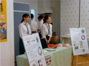 食育推進施策の基本的枠組み 120 2025/04/24 コラム:食育月間の取組「消費者の部屋」特別展示 食育の週~おいしい!国産食材で豊かで健やかな食生活~ 「消費者の部屋」特別展示 食育の週~おいしい!国産食材で豊かで健やかな食生活~ 食育月間の取組の一環として、令和元(2019)年6月3日から7日まで、農林水産省の「消費者の部屋」において、「食育の週~おいしい!国産食材で豊かで健やかな食生活~」をテーマに特別展示を行いました。 展示期間中は、「日本型食生活」等を紹介するパネル展示等のほか、米、野菜・果物、きのこ、畜産物(牛肉・牛乳)等について、日替わりで展示や試食を行いました。 さらに、関係団体の協力を得ながら、それぞれの食材の魅力やおいしい食べ方・選び方を知ってもらうための実演も行いました。品種の異なるお米の味の違いを見極める「ごはんの食べ比べ」、国産牛肉のおいしい食べ方を知ってもらう「家庭で出来る美味(おい)しいステーキの焼き方の実演」、果物をよりおいしく食べる方法を伝える「果物のカッティングの実演」、国産原木しいたけを味わう「しいたけの試食」、殺菌方法による味・風味の差を理解してもらう「殺菌方法の異なる3種類の牛乳飲み比べ」等、様々な国産食材を見たり味わったりすることで、その良さを理解するきっかけづくりになるような内容としました。 「農業女子プロジェクト」のメンバーが講師を務めた玉ねぎ収穫体験教室では、近隣の保育園児を招き、玉ねぎが生産者から消費者に届けられるまでの過程の説明後、園児たちが実際に玉ねぎをプランターから掘り出し、「あったよ!」、「こっちにもあった!」と言いながら、土のついた玉ねぎを掘り出す楽しそうな笑顔が見られました。 期間中の5日間で延べ1,025人が来場し、来場者アンケートでは「来場をきっかけに食育に対する意識が変わった」、「これからは国産食材をもっと購入したい」などの感想が寄せられるなど、特別展示により多くの方に国産食材の魅力を感じてもらうことができました。 ステーキの焼き方の実演 スイカのカッティングの実演