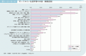 教育振興基本計画117 2025/07/15 Ⅳ.今後5年間の教育政策の目標と基本施策 (目標、基本施策及び指標) 目標8 生涯学び、活躍できる環境整備 【指標】 ・この1年くらいの間に生涯学習をしたことがある者の割合の増加 ・この1年くらいの間に行った学習の理由として、「①家庭や日常生活に生かすため」、「②人生を豊かにするため」、「③健康の維持・増進のため」、「④教養を深めるため」、「⑤他の人との親睦を深めたり、友人を得たりするため」、「⑥地域や社会における活動に生かすため」を挙げた者の割合の増加 ・この1年くらいの間の学習を通じて得た成果を仕事や就職の上で生かしている、又は生かせると回答した者の割合の増加 ・国民の鑑賞、鑑賞以外の文化芸術活動へのそれぞれの参加割合の増加