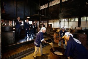 食育推進施策の基本的枠組み 194 2025/08/13 コラム:G20新潟農業大臣会合の機会を利用した 日本食・食文化の魅力発信の取組等 歓迎レセプションにおける福島県産水産物等を 使用した握り寿司の提供 令和元(2019)年5月11日から12日にかけて開催された「G20新潟農業大臣会合」には、34の国・機関が参加しました。会合においては、日本食・食文化の魅力の発信や食文化の交流等、様々な取組を実施しました。 歓迎レセプションにおいては、新潟県産のコシヒカリや福島県産の水産物等、地元新潟県や東日本大震災から復興した被災地域で生産された食材を利用した料理を提供し参加者をもてなしました。 会場内での展示ブース視察においては、福島県産サクランボの試食や米粉で作ったパンやクッキー等を紹介しました。また、現地視察では、餅つき見学や呈茶(ていちゃ)体験、酒蔵の見学、日本酒の試飲等を実施しました。 全体会合の中では、新潟市立高志(にいがたしりつこうし)中等教育学校5年生(高校2年生)の代表から、「持続可能な農業・食料分野に向けての提案」の発表が英語で行われました。発表に当たっては事前に、農林水産省の職員が同校を訪問し、農業や食に関する特別授業や意見交換を実施しました。 また、会合前日の5月10日には、G20新潟農業大臣会合のプレイベントとして「食の異文化交流」セミナーを開催し、世界と日本の発酵食品の共通性や歴史等についての講演や日本の食材と海外の食材とを組み合わせた料理の実演及び試食・試飲を実施しました。 現地視察における餅つき見学の様子 全体会合における学生提言の様子